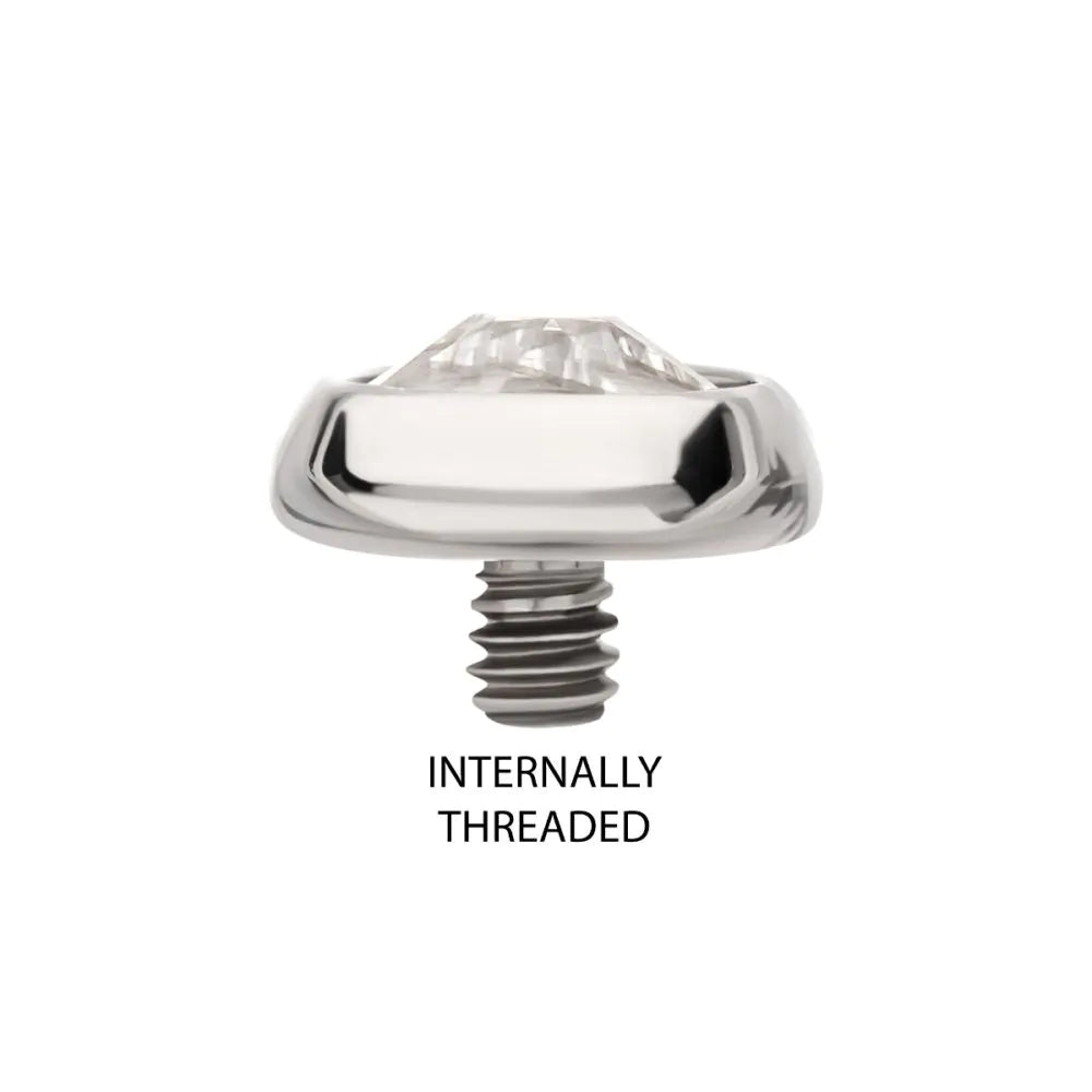 14g Titanium Internally Threaded Low-Profile Bezel Set Swarovski Crystal Dermal Top. Manufactured from High Polish Implant Grade Titanium (Ti-6AL-4V-ELI ASTM F136).