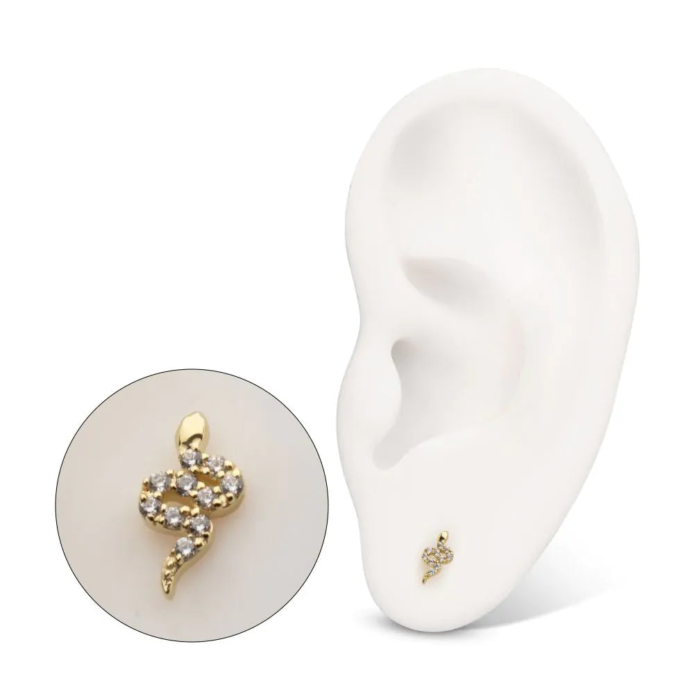 Invictus 14Kt Yellow Gold M0.8 Internally Threaded Pave Gem Snake Top