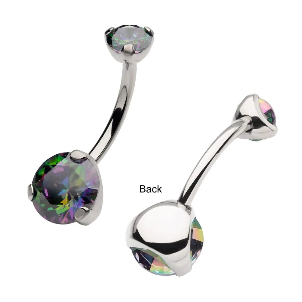 Invictus Titanium Internally Threaded Double 3-Prong Round Gem Fixed Bottom Navel
