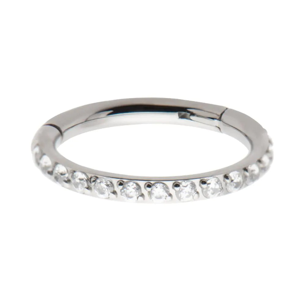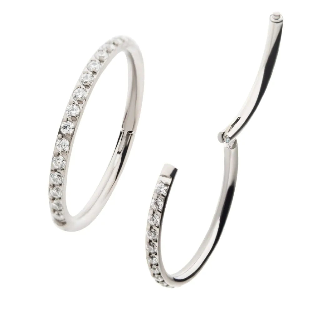 Invictus Titanium with 1mm CNC Set Clear CZ Eternity Gem Side Facing Hinged Segment Clicker