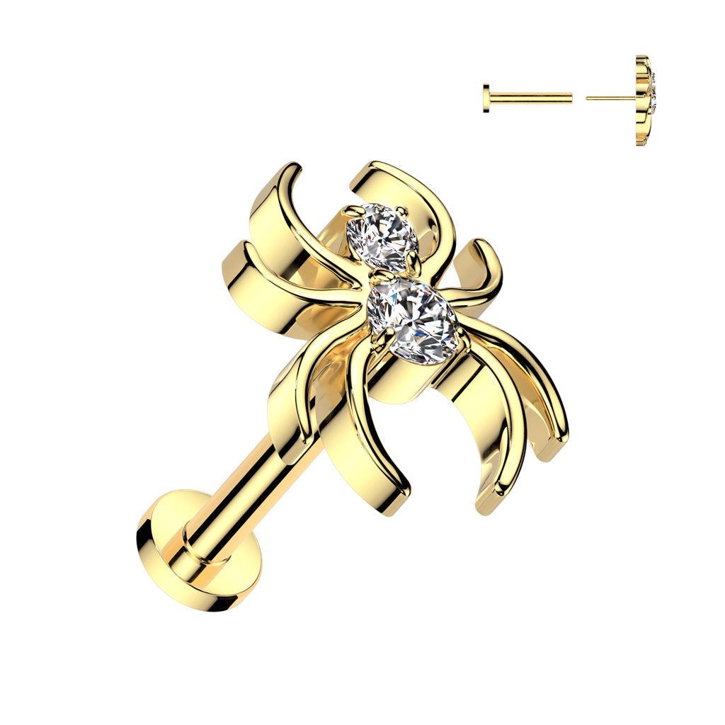 Spider Implant Grade Titanium Threadless Push In Labret With CZ Top